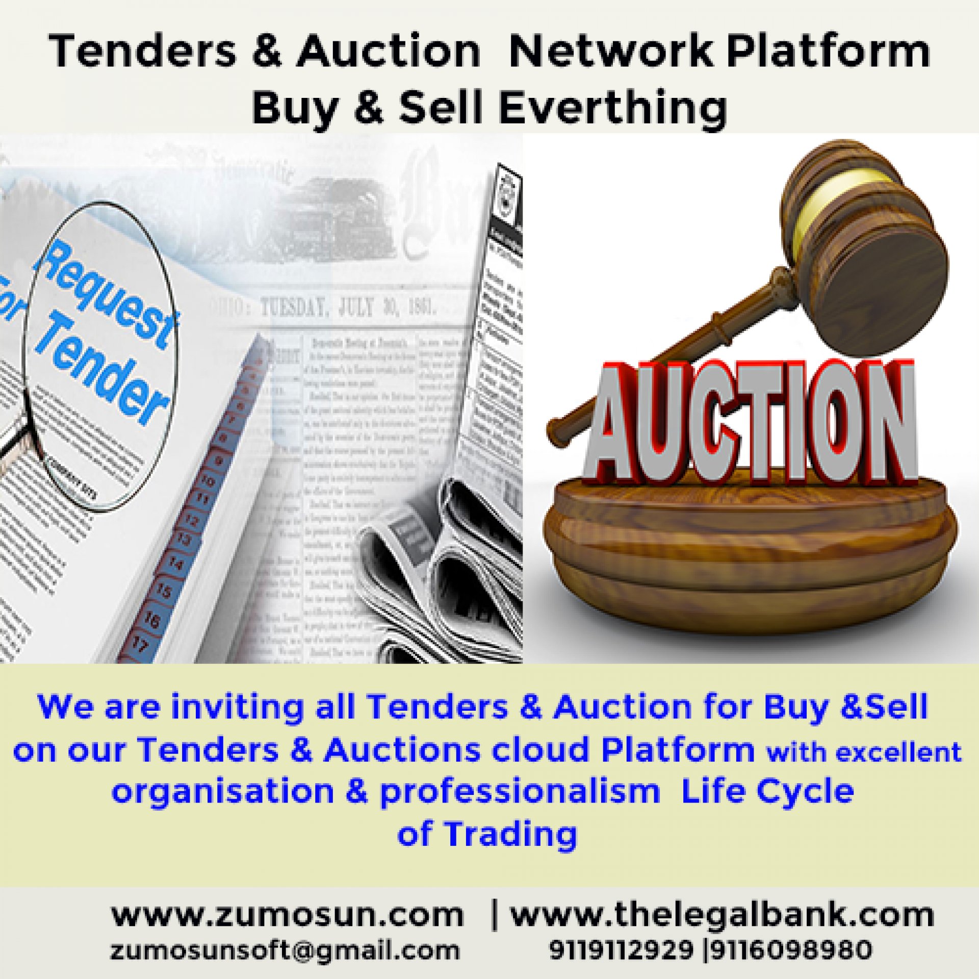 Online Tender & Auction Network cloud platform is a Zumosun integrated cloud platform for buyer’s and seller’s excellent interaction, information, management, organized suite and standard use of the Online Tender & Auction Networkfor boosting the manufacturing, trading and company profits.