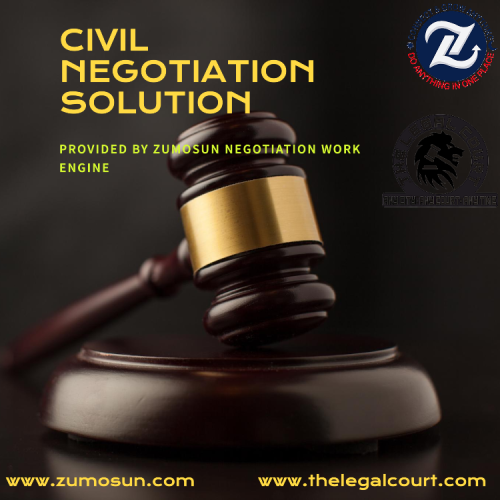 Zumosun Negotiation Work Engine, through TheLegalCourt, offers a robust and scientifically integrated negotiation solution for resolving disputes across India. Our commitment to leveraging advanced technology, data analytics, and continuous research ensures that we provide effective, efficient, and successful negotiation services. Connect with us to experience a streamlined negotiation process that prioritizes resolution, efficiency, and satisfaction for all parties involved..Contact us on 9116098980/9119112929 today or visit our website www.thelegalcourt.com , www.zumosun.comfor a consultation and take the first step towards resolving your legal issues with confidence.